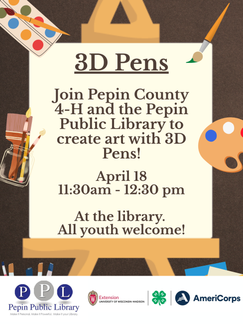 Join Pepin County 4-H and the Pepin Public Library for this awesome art program!