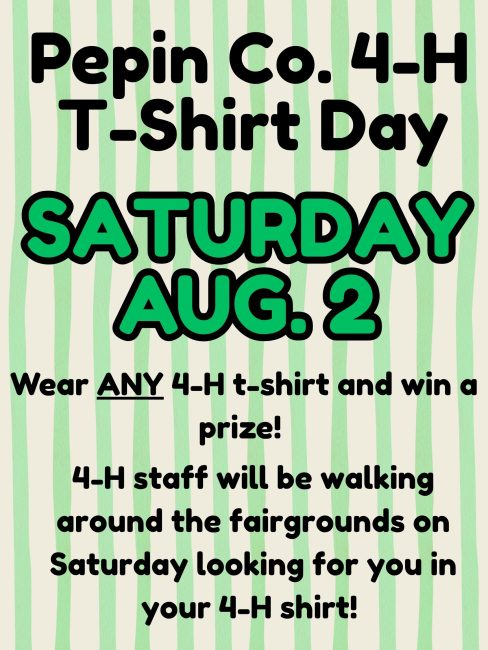 Wear a 4-H t-shirt to the Buffalo/Pepin County Fair and win a FREE 4-H prize!